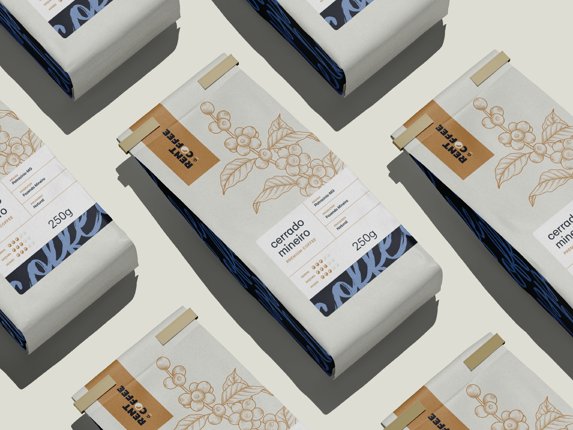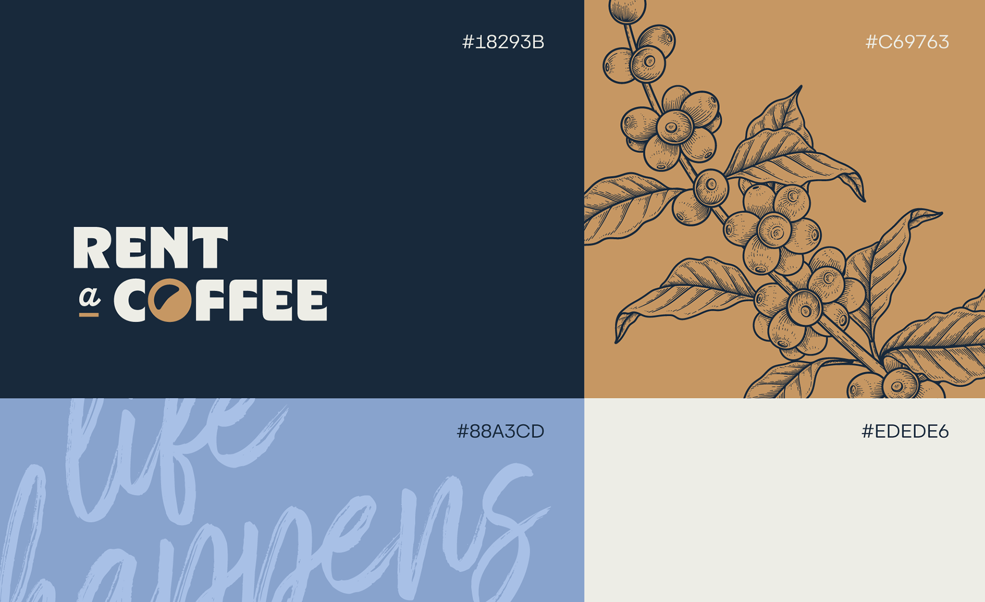 A palavra "café" instantaneamente nos remete a aromas, calor e boas companhias. Foi essa atmosfera das "coffee houses" que inspirou a criação do universo visual da Rent a Coffee, uma empresa de aluguel de máquinas de café para uso em escritórios, cafeterias ou estabelecimentos comerciais em geral.